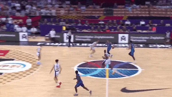 比赛的第二节,阿夫迪亚反击当中接队友击地背传,迎着防守干拔三分命中。