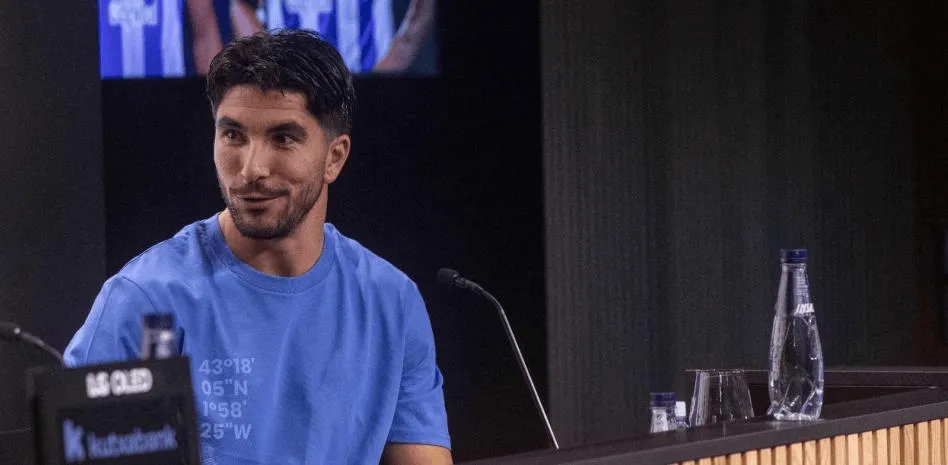 虎扑09月02日讯 卡洛斯-索莱尔今天作为皇家社会新援正式亮相。近年来转会市场上一直有他加盟皇家社会的传闻,而2025年终于成为他与俱乐部缘分的起点,双方签约至2030年。这位西班牙球员展示了他的18号球衣,随后开始接受媒体提问。