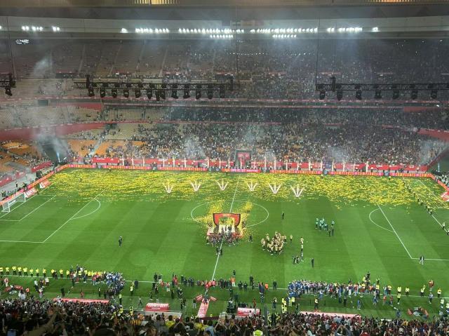 球场外,巴萨也下足了功夫,俱乐部官方安排了大多数本地球迷前往塞维利亚的行程。从马德里前往塞维利亚只需要乘坐不到3小时的高铁,或是不到5小时的汽车自驾,相比之下,从巴塞罗那去塞维利亚要麻烦很多。不过有了俱乐部的帮助,当晚出现在卡尔图哈球场看台上的巴萨拥趸,并不比皇马球迷少。当一切尘埃落定后,皇马看台迅速走空,只留下红蓝球迷们与球队共同享受夺冠的喜悦。这一夜不仅是夺冠的巴萨,现场的每一位红蓝拥趸都是最大的赢家。
